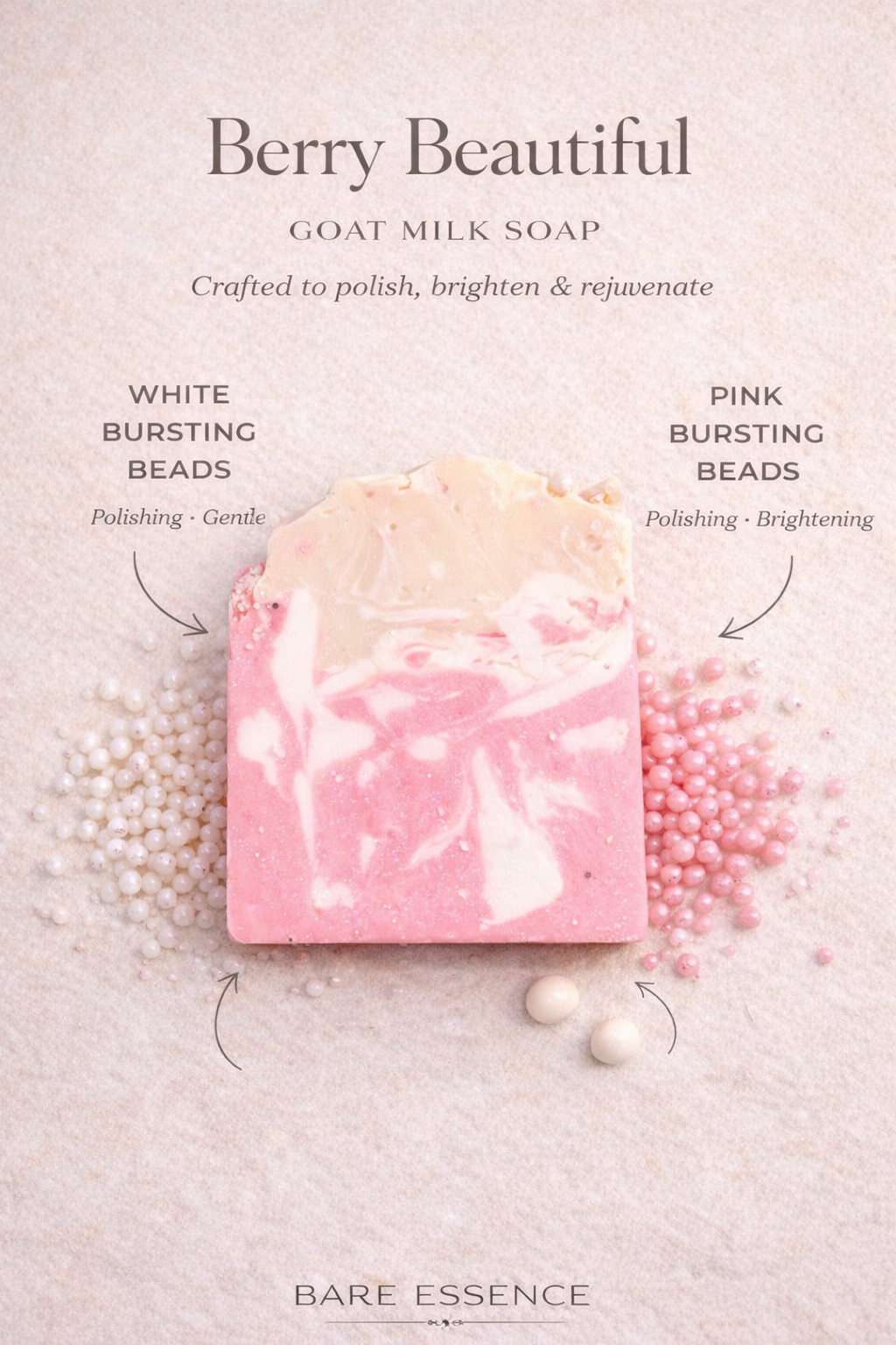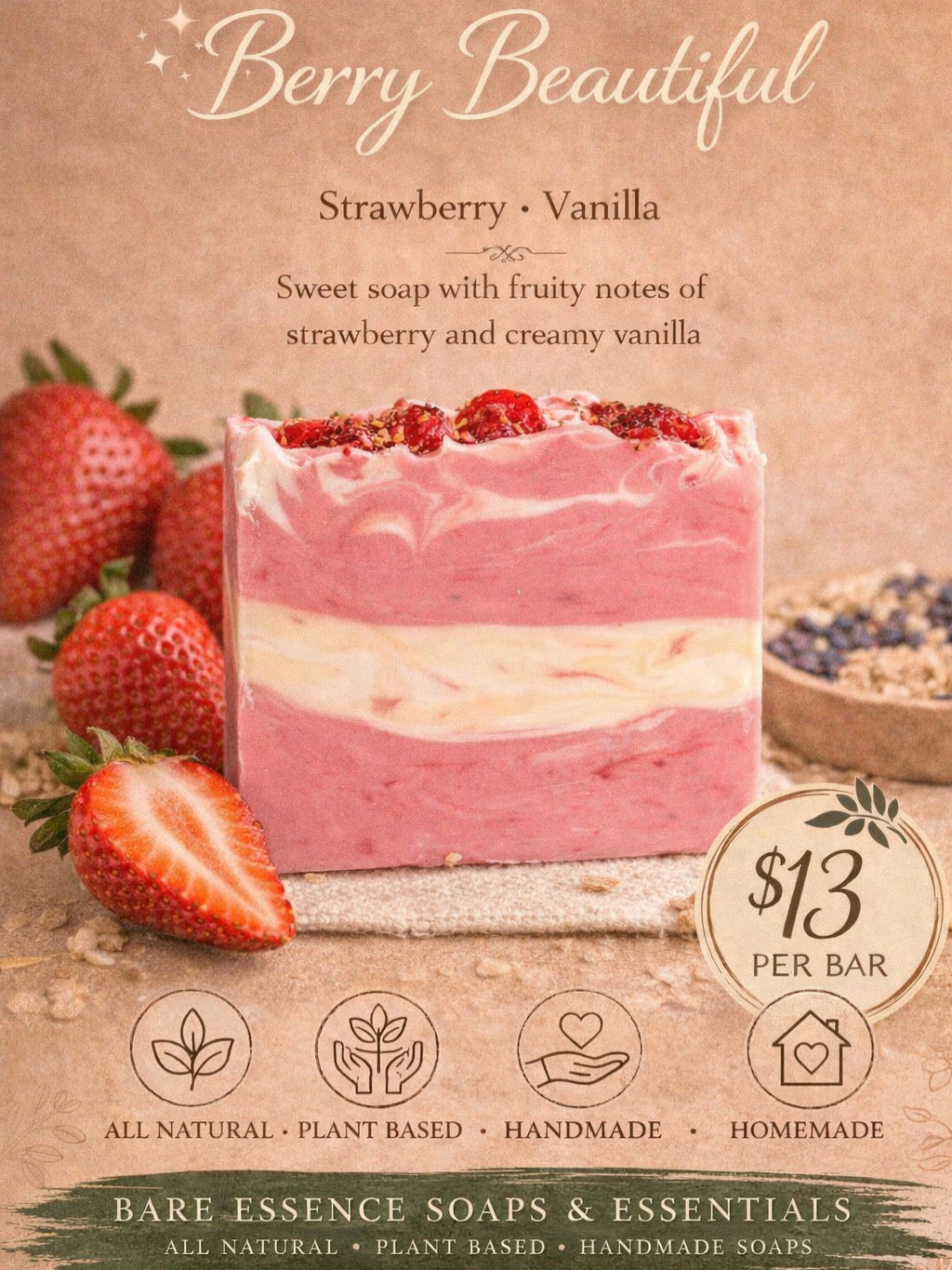 ♡: Treat your skin to a sweet indulgence with Berry Beautiful, a luscious bar infused with strawberries and silky cream-inspired notes.