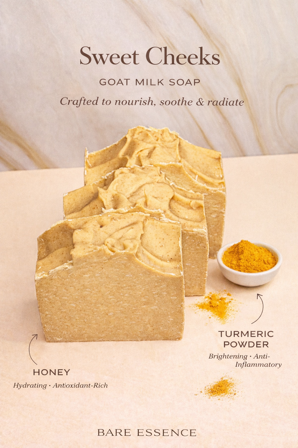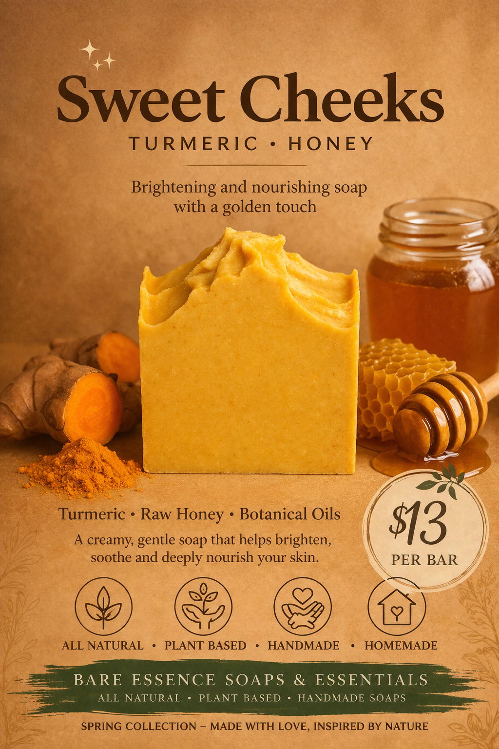♡: Brighten and pamper your skin with this golden bar, infused with antioxidant-rich turmeric and soothing honey.