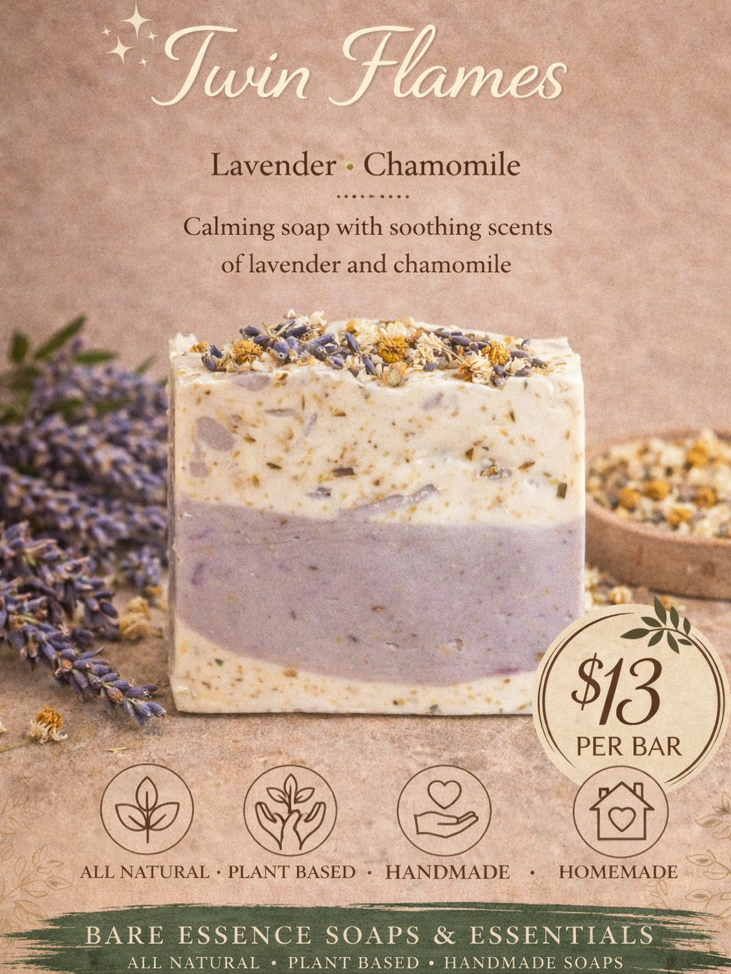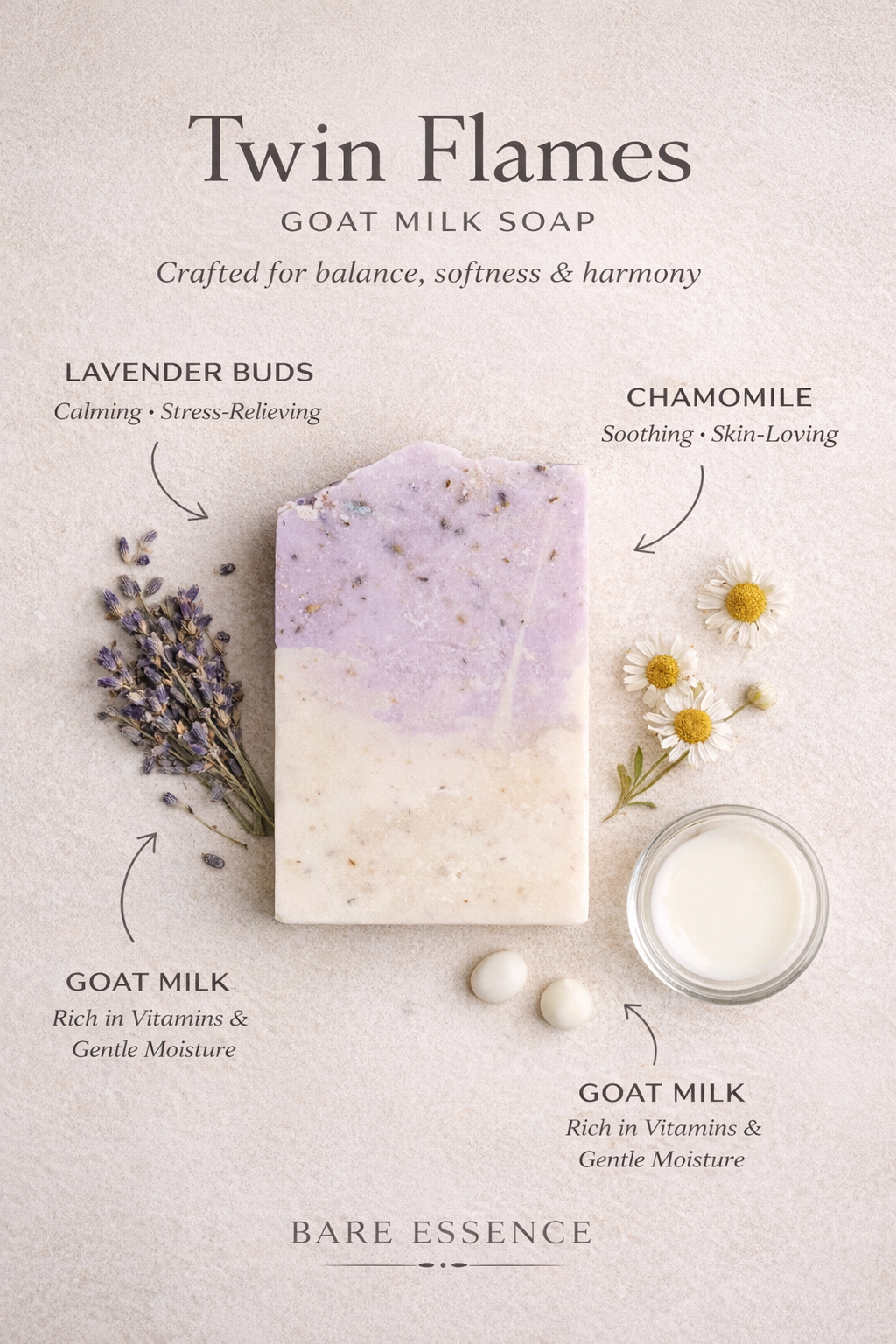 ♡: Twin Flames is a gentle, moisturizing bar crafted with the shea butter and natural oils, designed to relax both body and mind.
